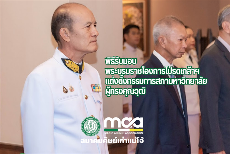 นายกสมาคมศิษย์เก่าแม่โจ้ ดร.ขุนศรี ทองย้อย เข้าร่วมพิธีรับมอบ พระบรมราชโองการโปรดเกล้าฯ แต่งตั้ง กรรมการสภามหาวิทยาลัยผู้ทรงคุณวุฒิ เพื่อสนับสนุนการบริหารและพัฒนามหาวิทยาลัยแม่โจ้